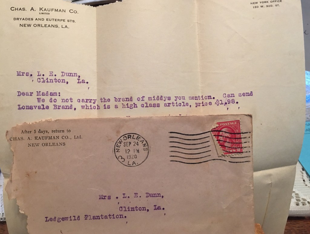 Also in the trunk was a letter addressed to Katie’s sister, my great-grandmother Mary Phares Dunn in 1920. It’s there that I discoverd that the big old house had a name.